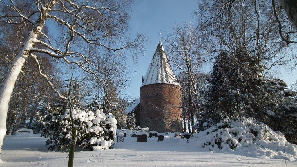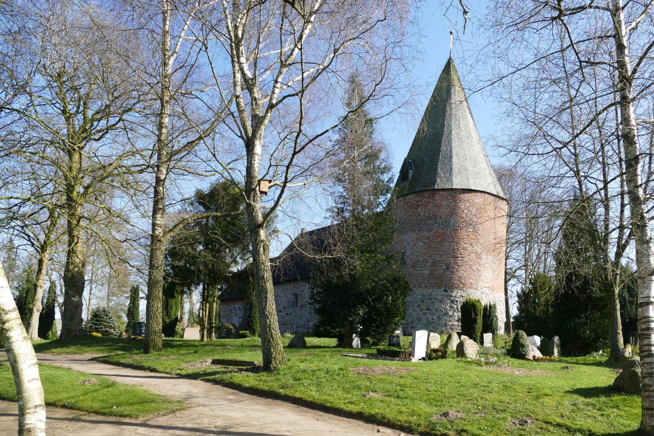Die Kirche ist ein kleiner, einschiffiger Bau mit einem eingezogenen Kastenchor, der später eingewölbt und durch einen Backsteinanbau verlängert wurde. Die Kirche stammt wahrscheinlich aus der Zeit Waldemars I., der als Jarl von Schleswig und König von Dänemark an vielen Orten seines Reichs die früheren Holzkirchen durch Feldsteinkirchen ersetzen ließ. Der nachträglich mit dem Kirchenschiff verbundene Rundturm, dessen Grundgeschoss aus Feldstein vermutlich ebenfalls aus dem 12. Jahrhundert stammt, wurde später aus Backstein aufgemauert. Ob es sich um einen Wehrturm handelte, ist eher unwahrscheinlich.[1]