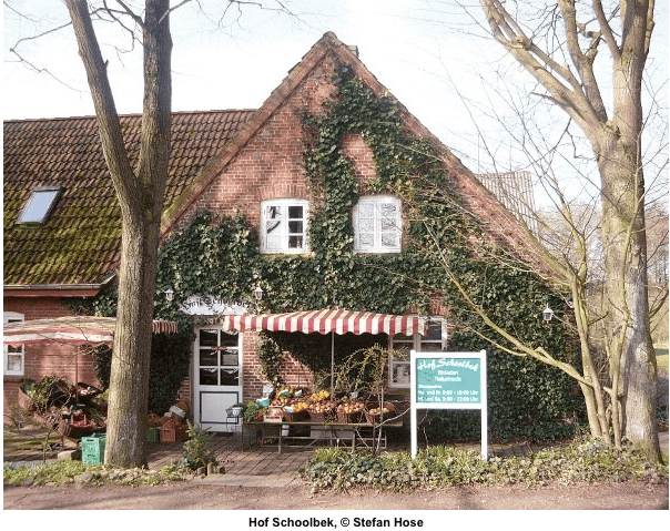 Biegen Sie von der B76 zwischen Eckernförde und Fleckeby Richtung "Weseby" ab und folgen Sie der Straße ca. 700 Meter. Der Hof Schoolbek liegt nun zu ihrer Linken.